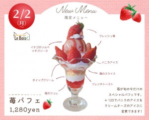2/2(月)~ 限定メニュー、苺のパフェ