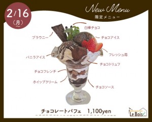 2/16(月)~ 限定メニュー、チョコパフェ